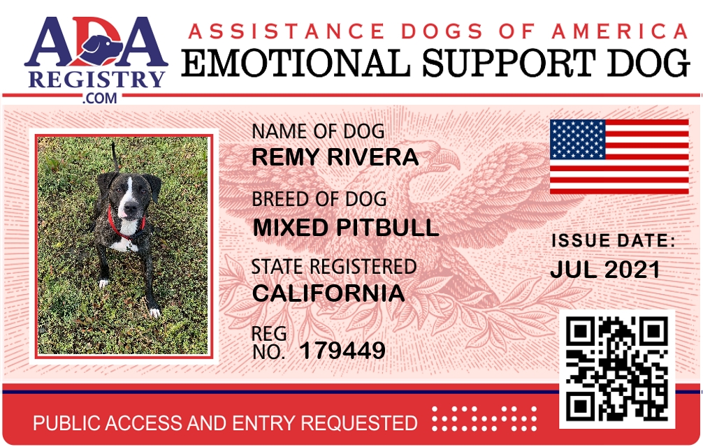 Emotional Support Dog Registration for Remy Rivera