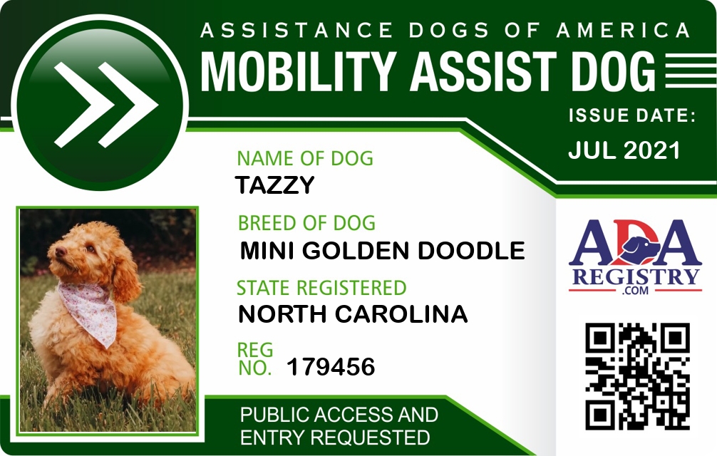 Brace / Mobility Assistance Dog Registration for Tazzy
