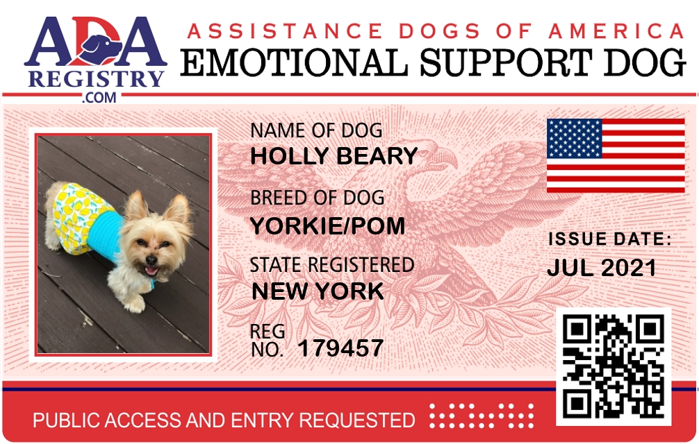 Emotional Support Dog Registration for Holly Beary