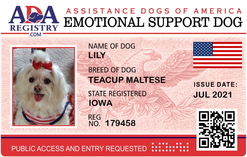 Emotional Support Dog Registration for LIly