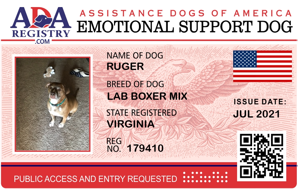 Emotional Support Dog Registration for Ruger