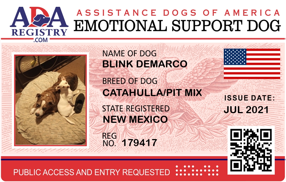 Emotional Support Dog Registration for Blink DeMarco