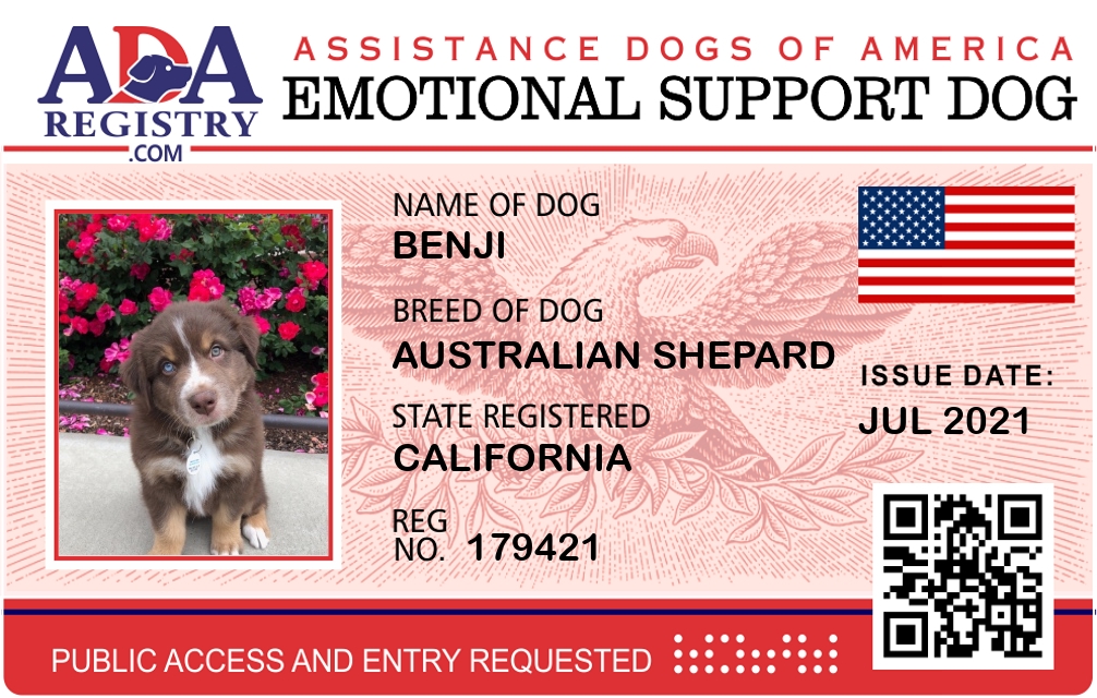 Emotional Support Dog Registration for Benji