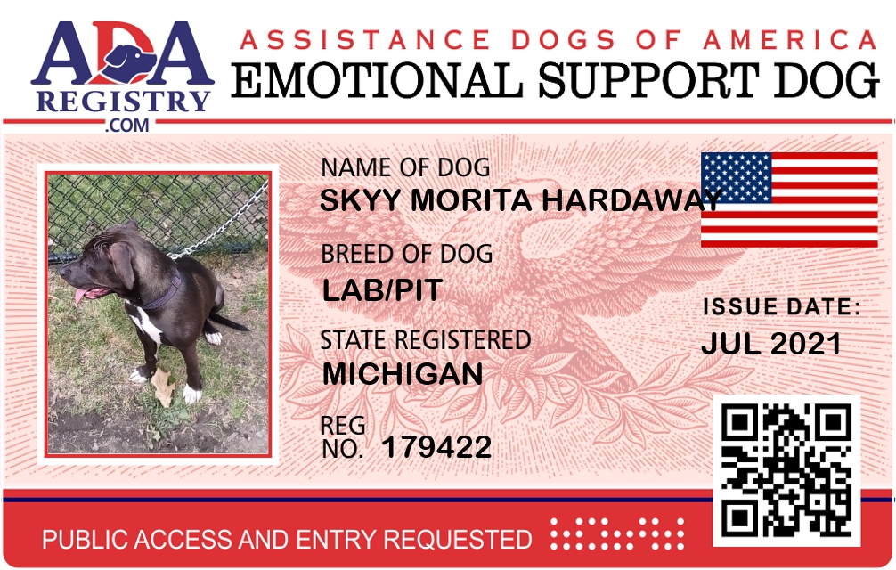 Emotional Support Dog Registration for Skyy Morita Hardaway