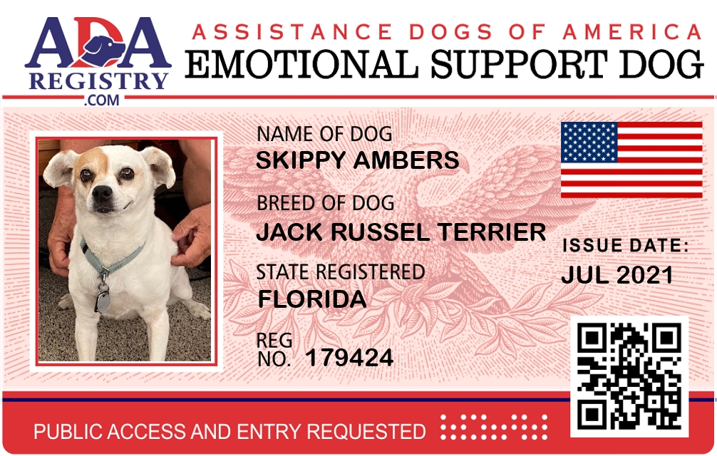 Emotional Support Dog Registration for Skippy Ambers