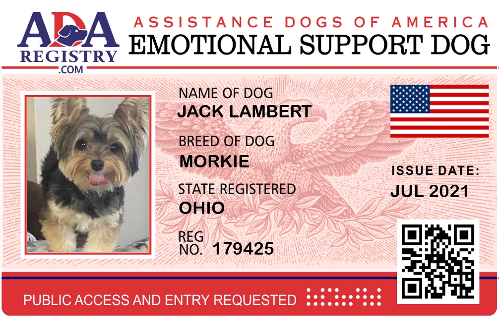 Emotional Support Dog Registration for Jack Lambert