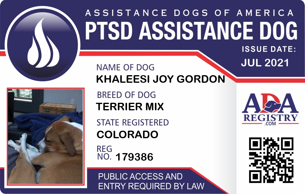 PTSD Assistance Dog Registration for Khaleesi Joy Gordon