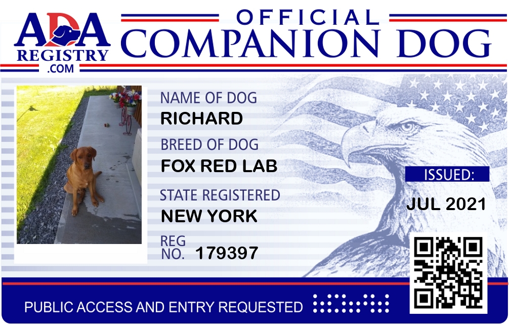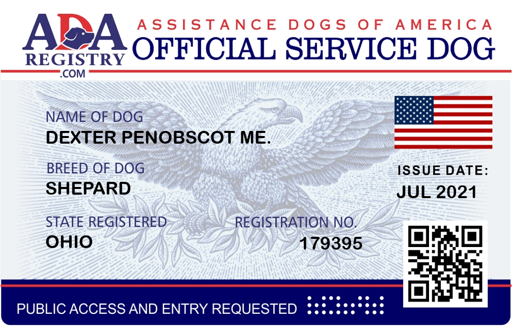 Service Dog Registration for Dexter Penobscot Me.