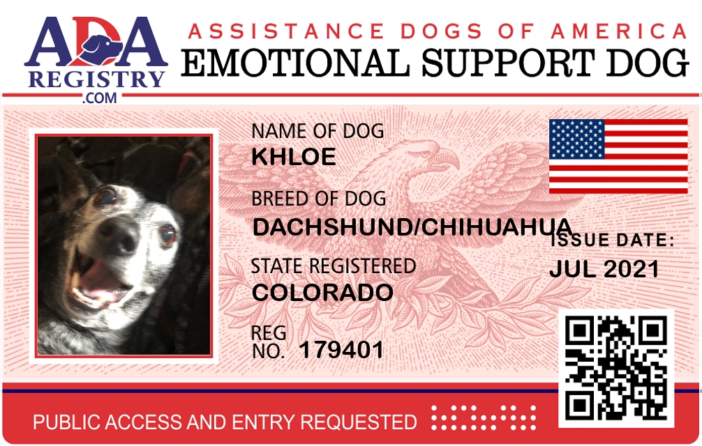 Emotional Support Dog Registration for Khloe