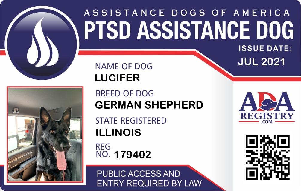 PTSD Assistance Dog Registration for Lucifer