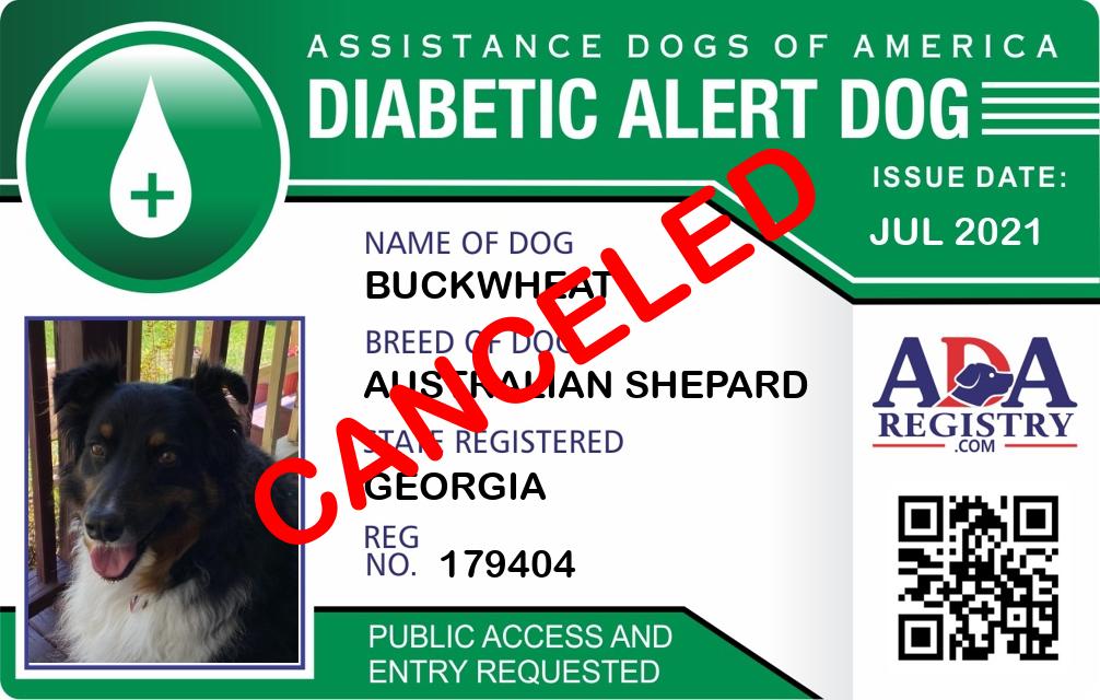 Diabetic Alert Dog Registration for Buckwheat