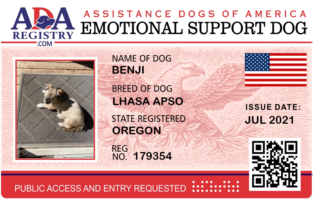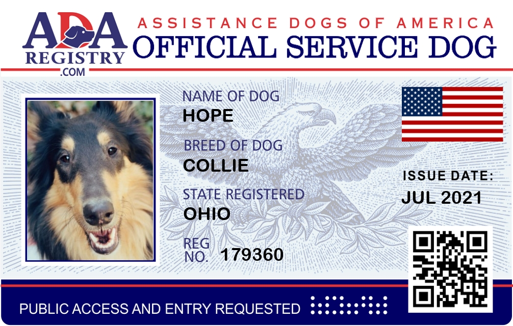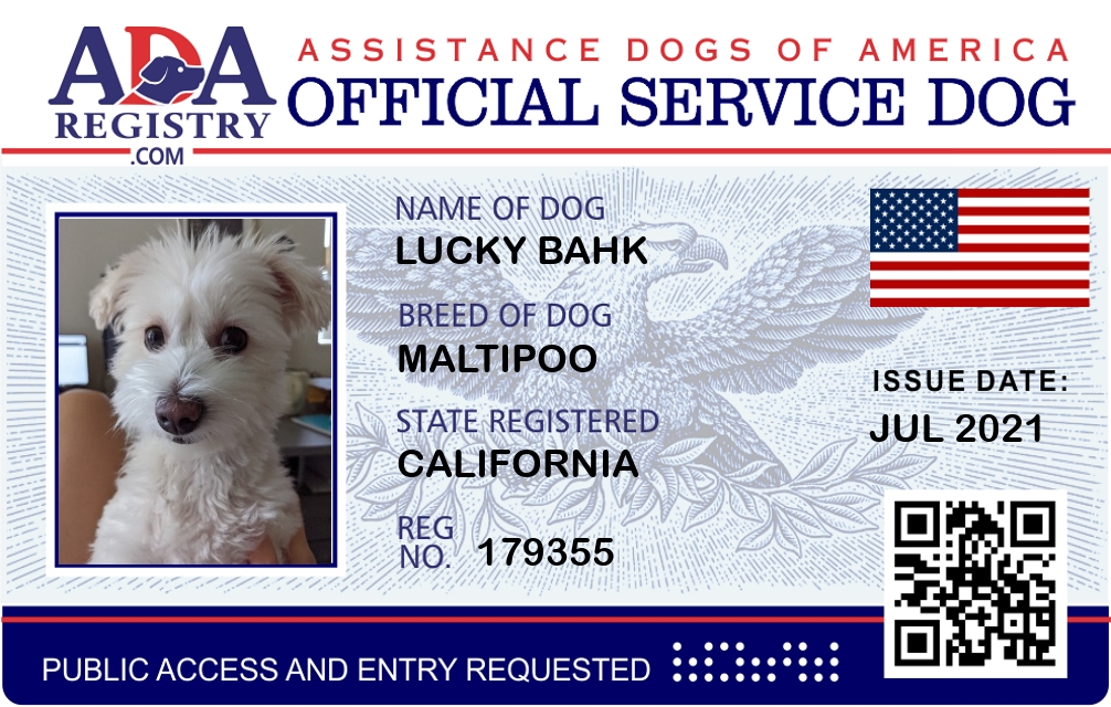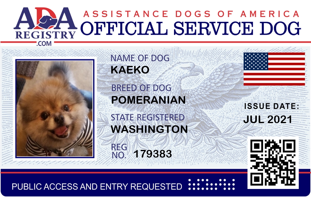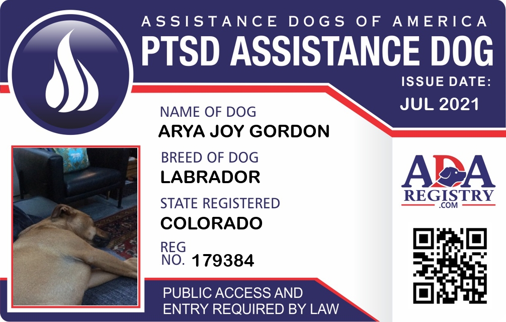 PTSD Assistance Dog Registration for Arya Joy Gordon