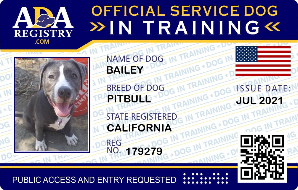 Service Dog In Training Registration for Bailey