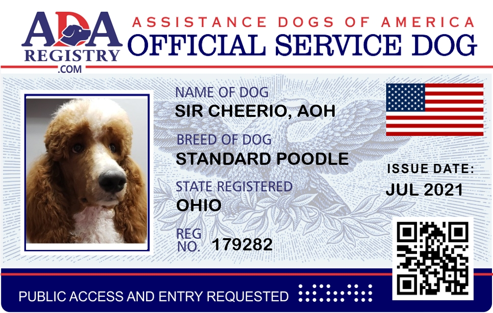 Service Dog Registration for Sir Cheerio, AoH