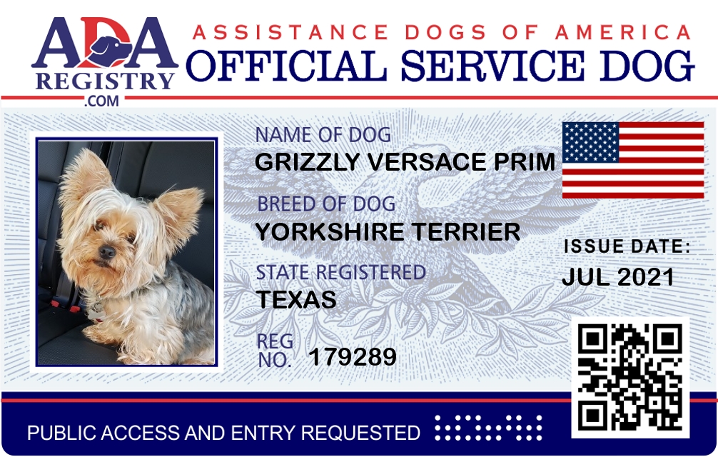 Service Dog Registration for Grizzly Versace Prim