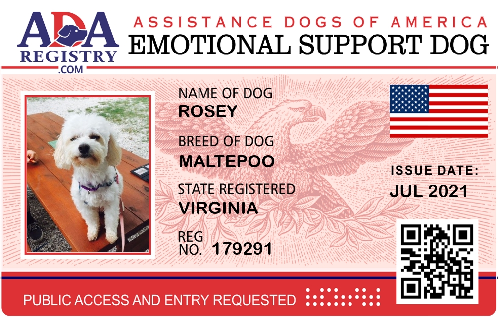 Emotional Support Dog Registration for Rosey