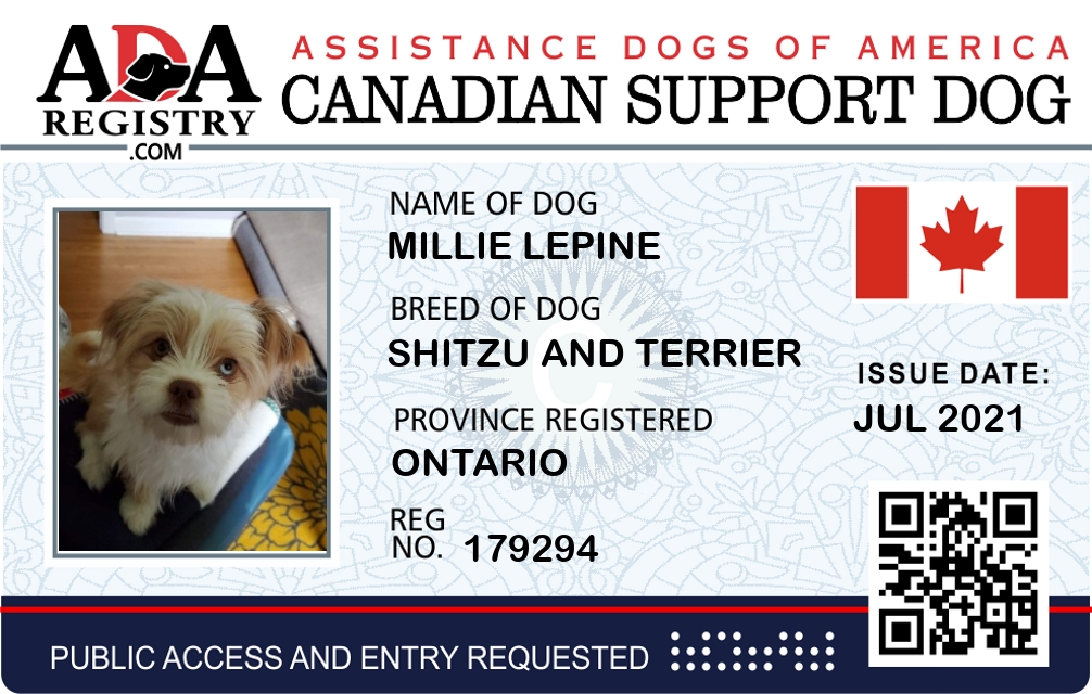 Emotional Support Dog Registration for Millie Lepine