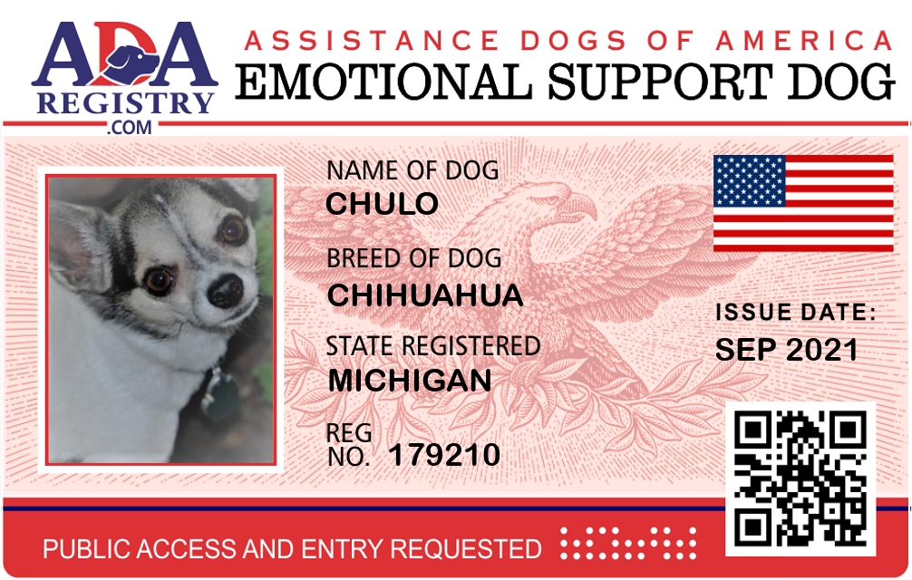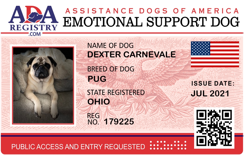Emotional Support Dog Registration for Dexter Carnevale