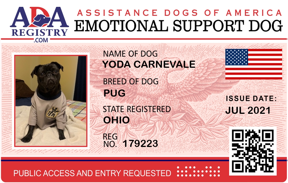 Emotional Support Dog Registration for Yoda Carnevale