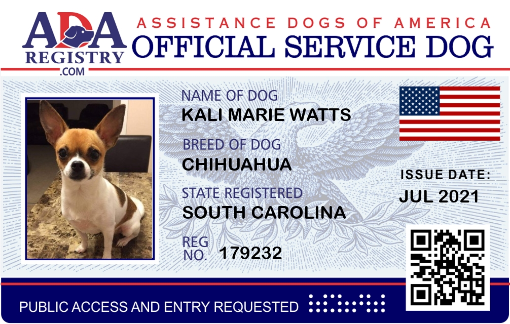 Service Dog Registration for Kali Marie Watts