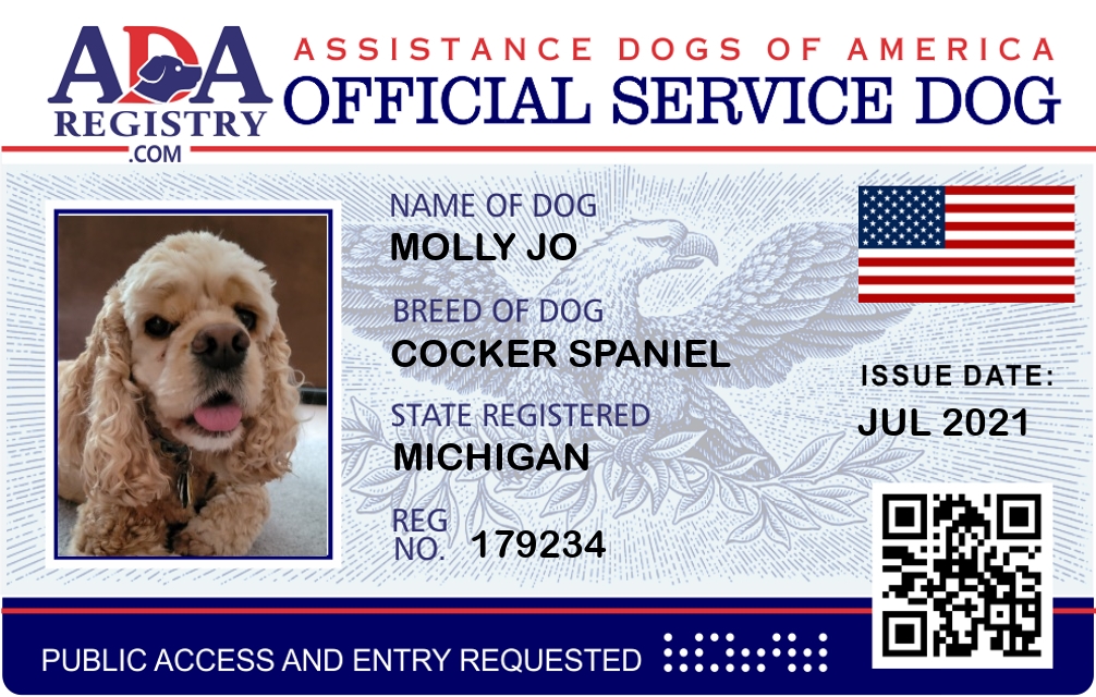 Service Dog Registration for Molly Jo