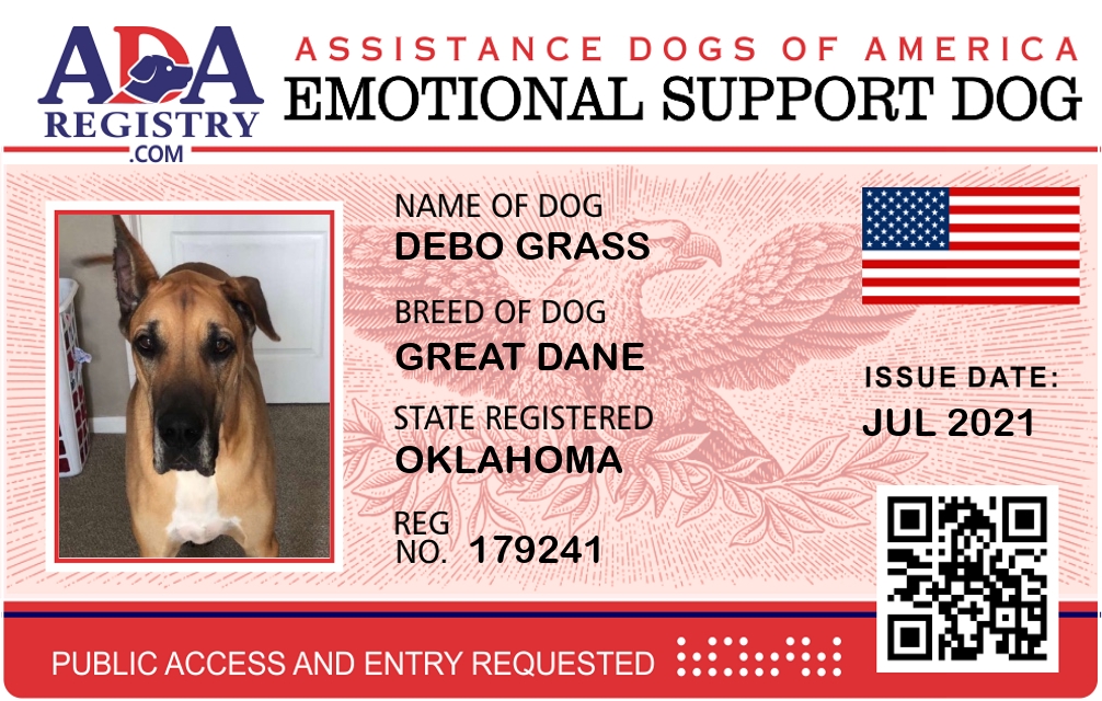 Emotional Support Dog Registration for DeBo Grass