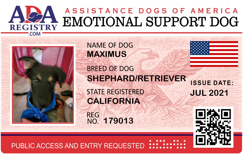 Emotional Support Dog Registration for Maximus