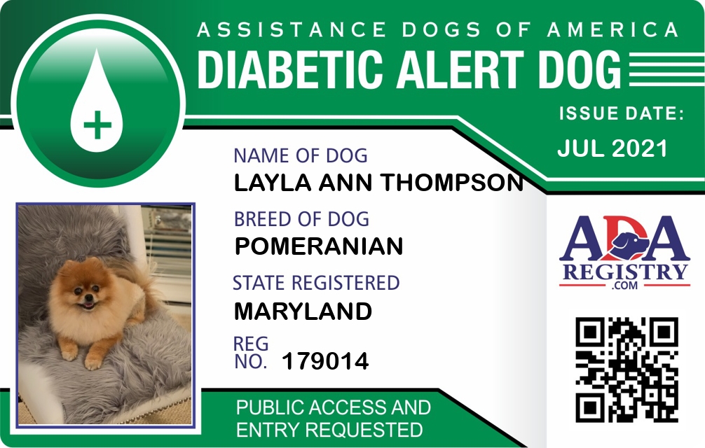 Diabetic Alert Dog Registration for Layla Ann Thompson