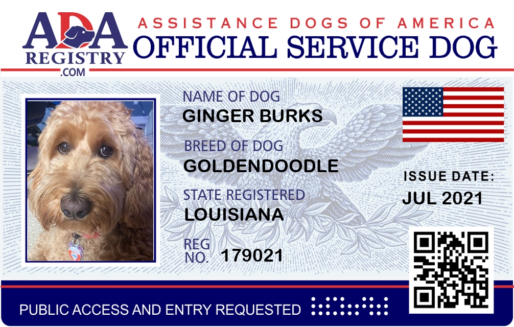 Service Dog Registration for Ginger Burks