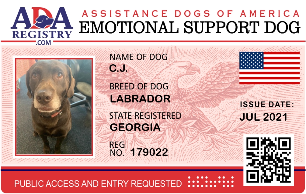 Emotional Support Dog Registration for C.J.