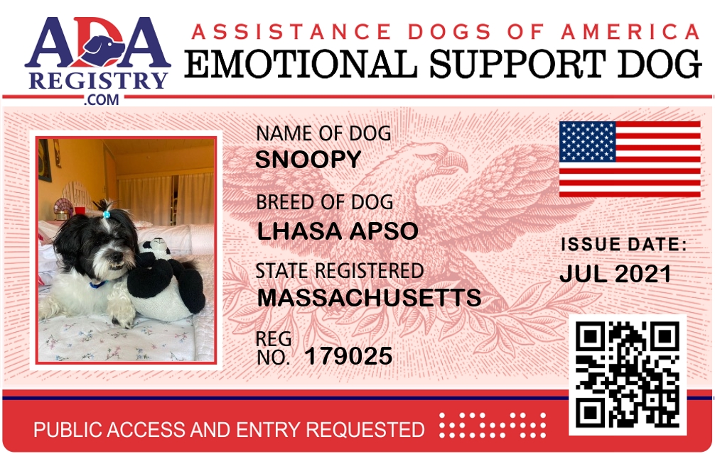 Emotional Support Dog Registration for Snoopy