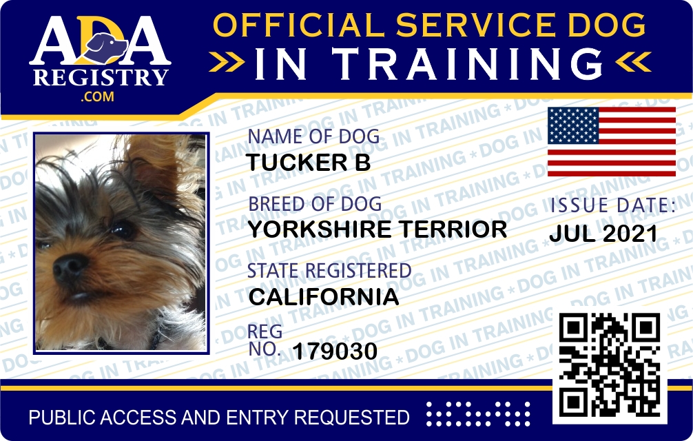 Service Dog In Training Registration for Tucker B