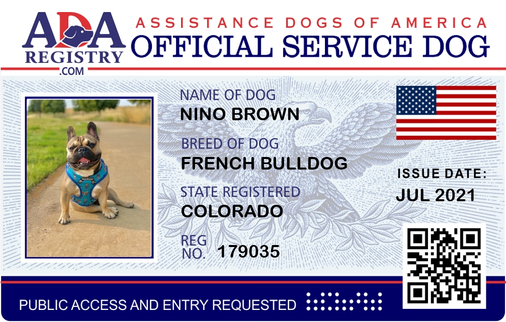 Service Dog Registration for Nino Brown