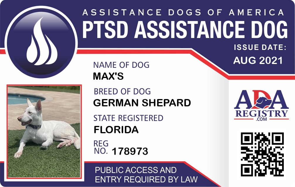 PTSD Assistance Dog Registration for Max's