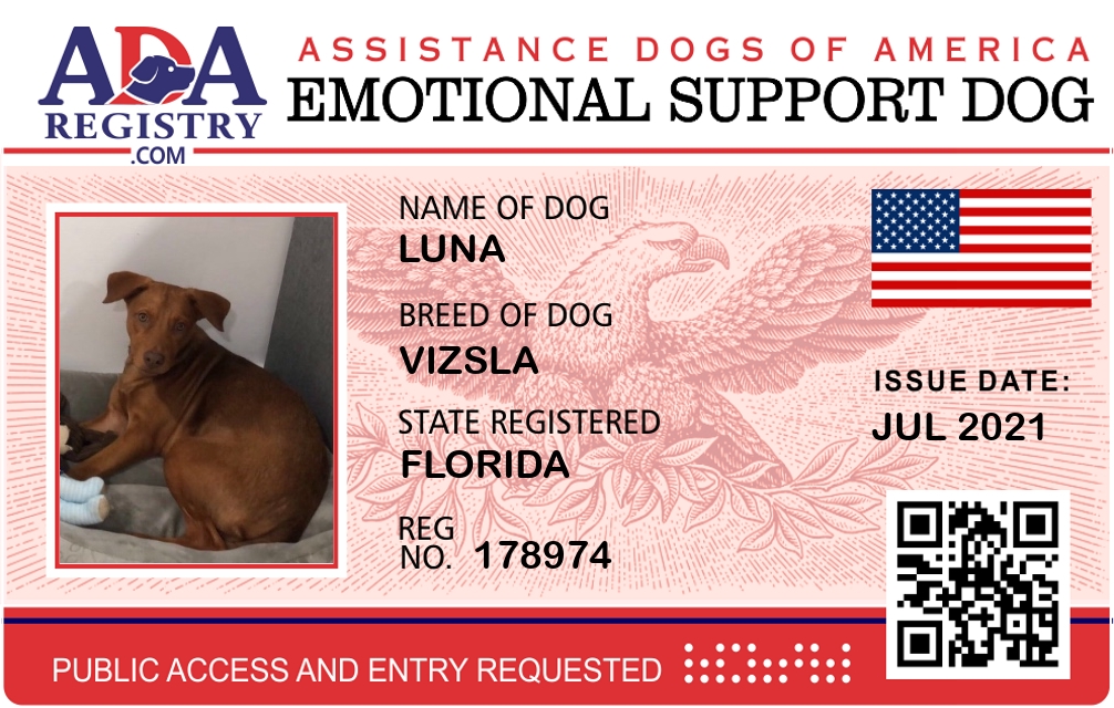 Emotional Support Dog Registration for LUNA
