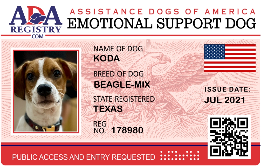 Emotional Support Dog Registration for Koda