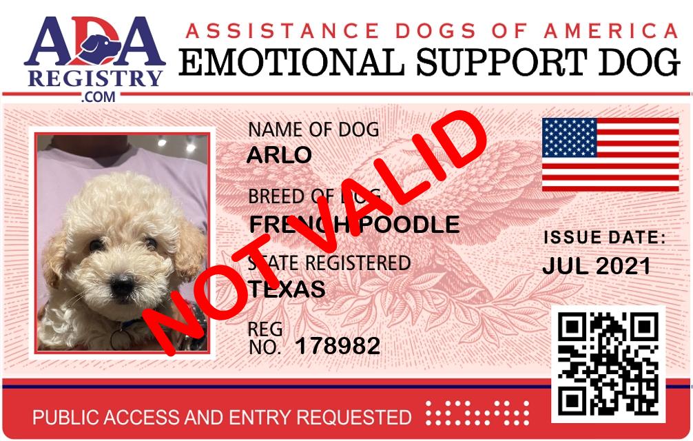 Emotional Support Dog Registration for Arlo