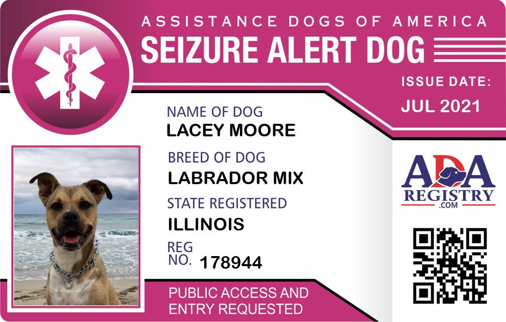 Seizure Assistance Dog Registration for Lacey Moore