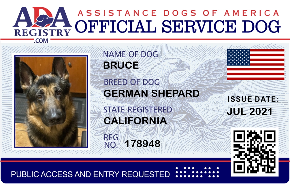 Service Dog Registration for Bruce