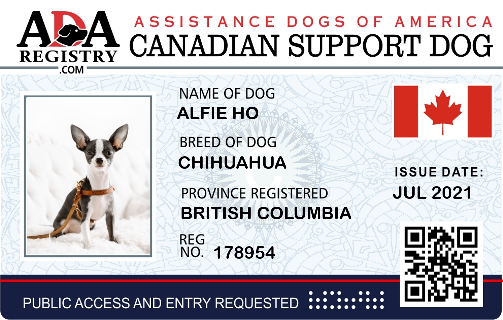 Emotional Support Dog Registration for Alfie Ho