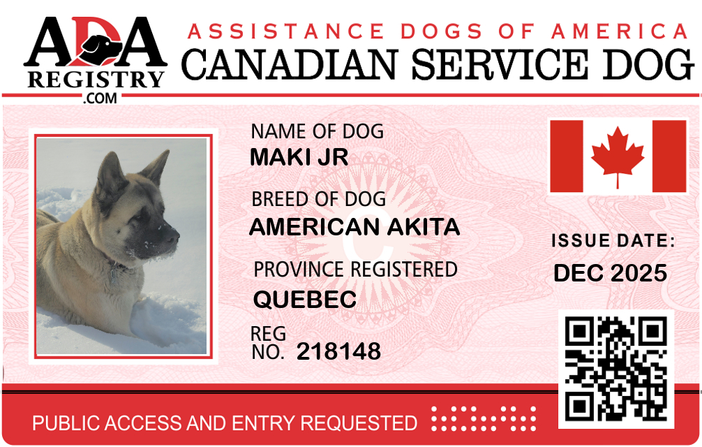 Diabetic Alert Dog Registration for Bubbabear two paws