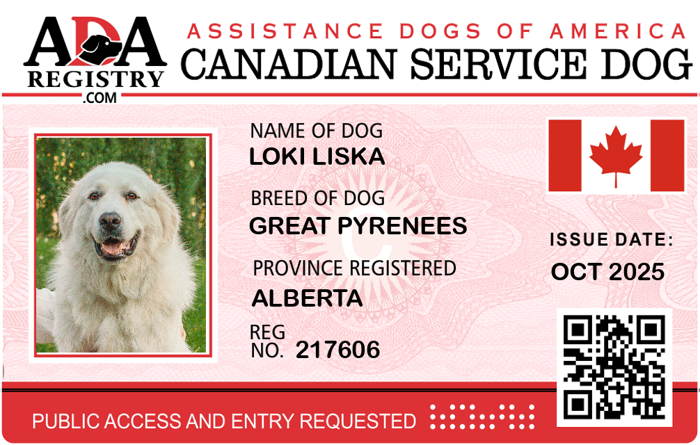 Service Dog Registration for Loki Liska