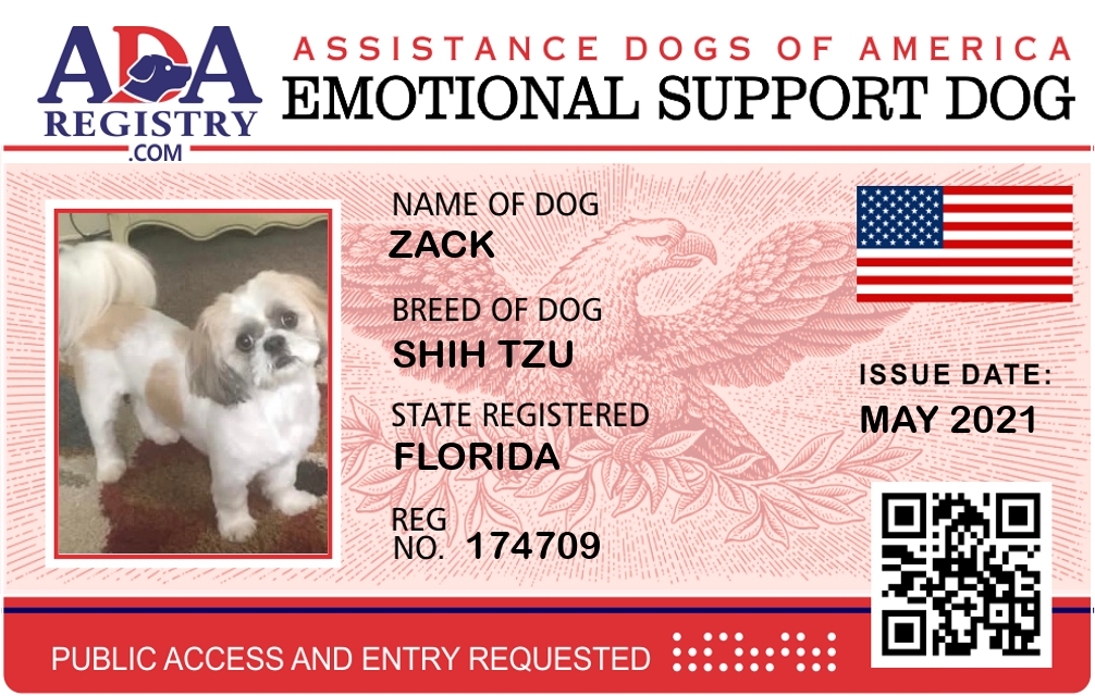 Emotional Support Dog Registration for ZACK