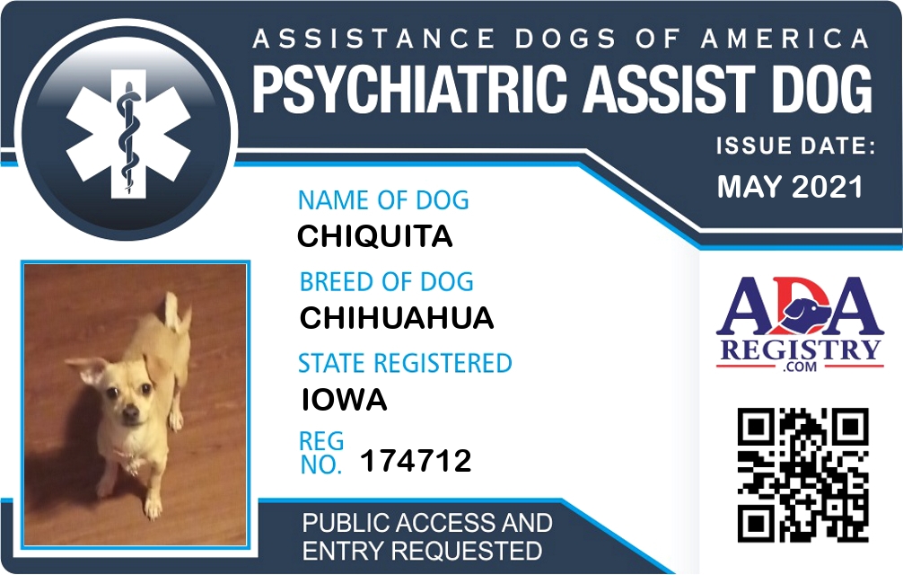 Psychiatric Service Dog Registration for Chiquita