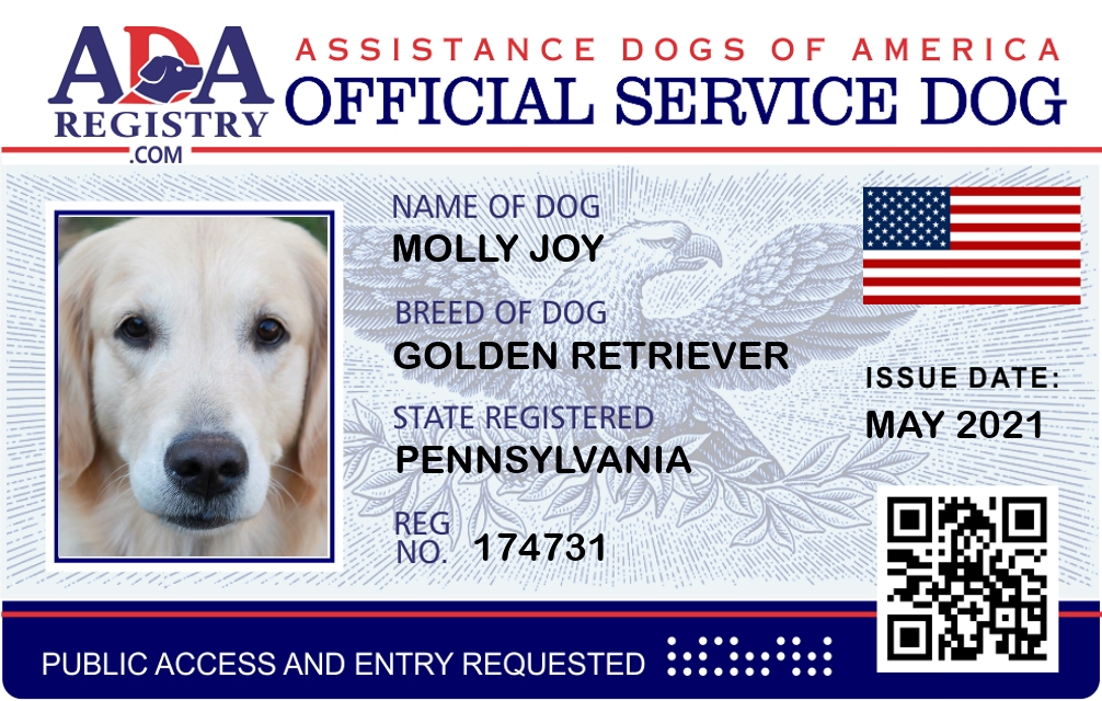 Service Dog Registration for Molly Joy