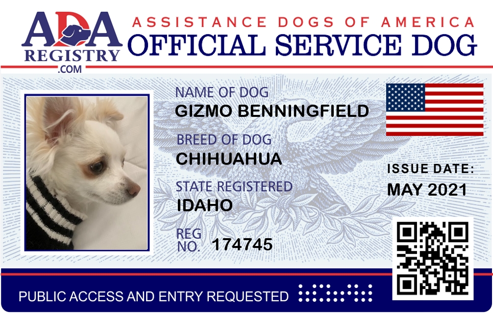 Service Dog Registration for Gizmo Benningfield