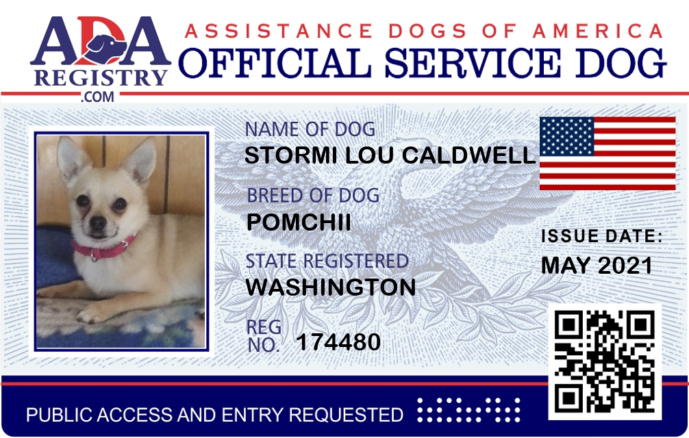 Physical Assistance Dog Registration for Puppy Monkey Baby