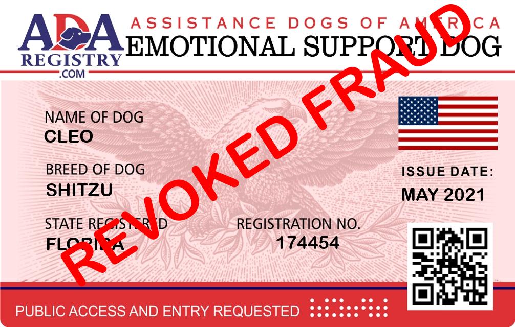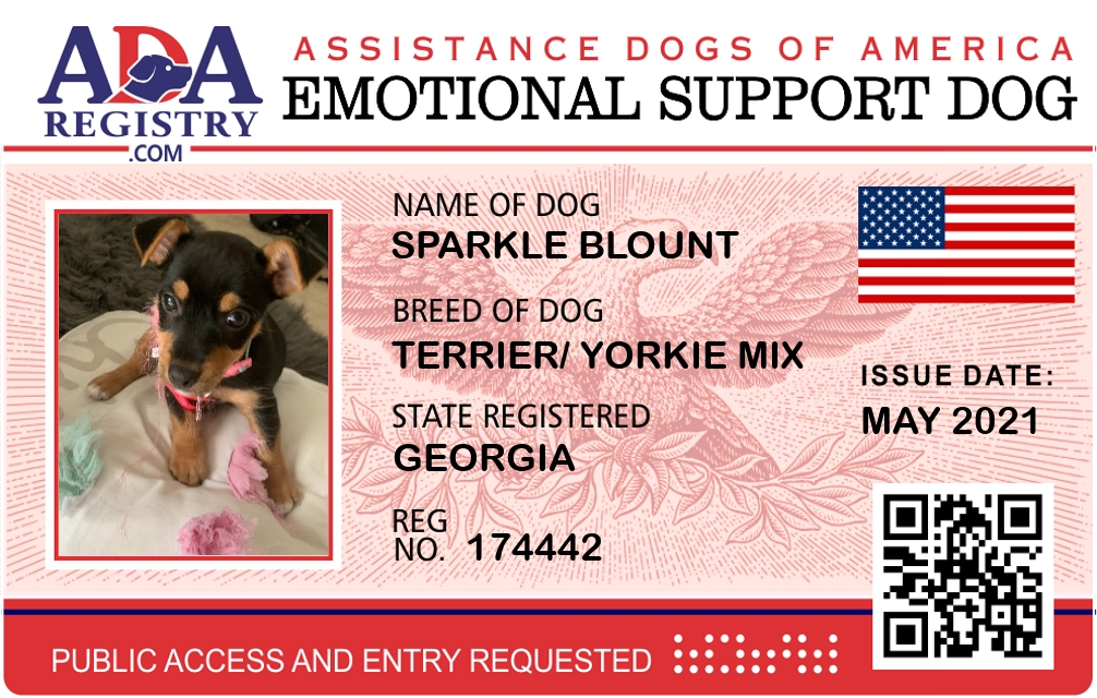 Emotional Support Dog Registration for Sparkle Blount