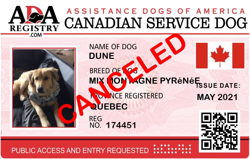 Service Dog Registration for Dune