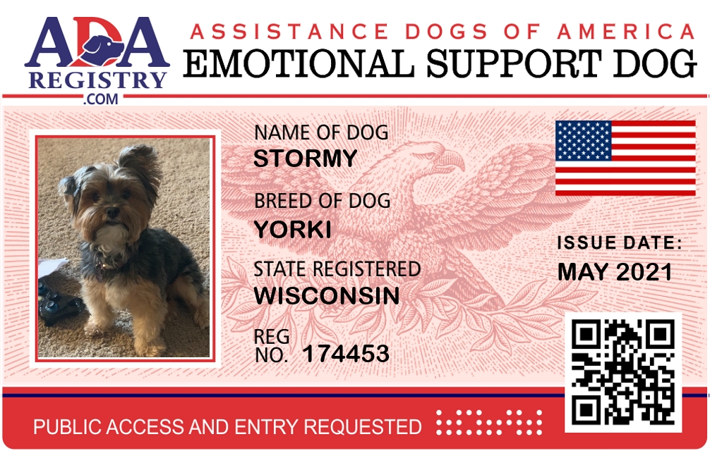 Emotional Support Dog Registration for Stormy